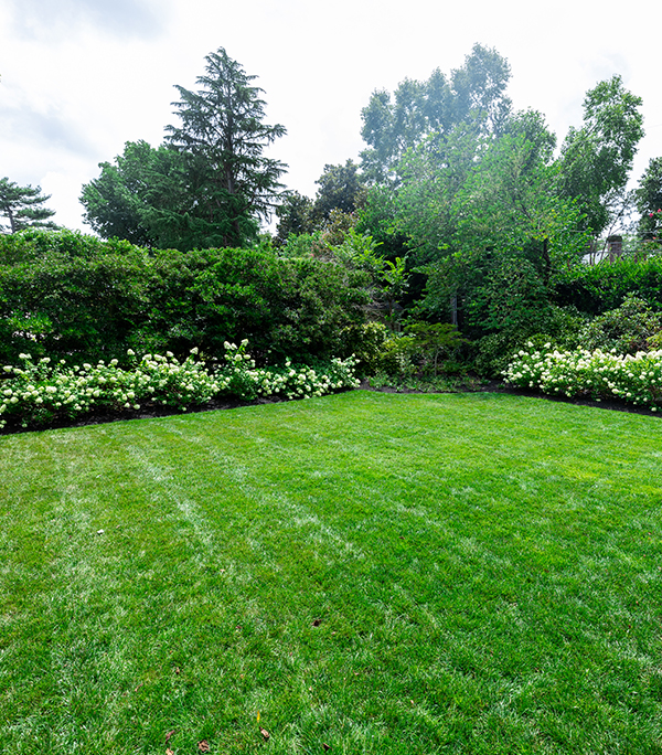 Full-service maintenance, including mowing, mulching, pruning, and seasonal care, keeps