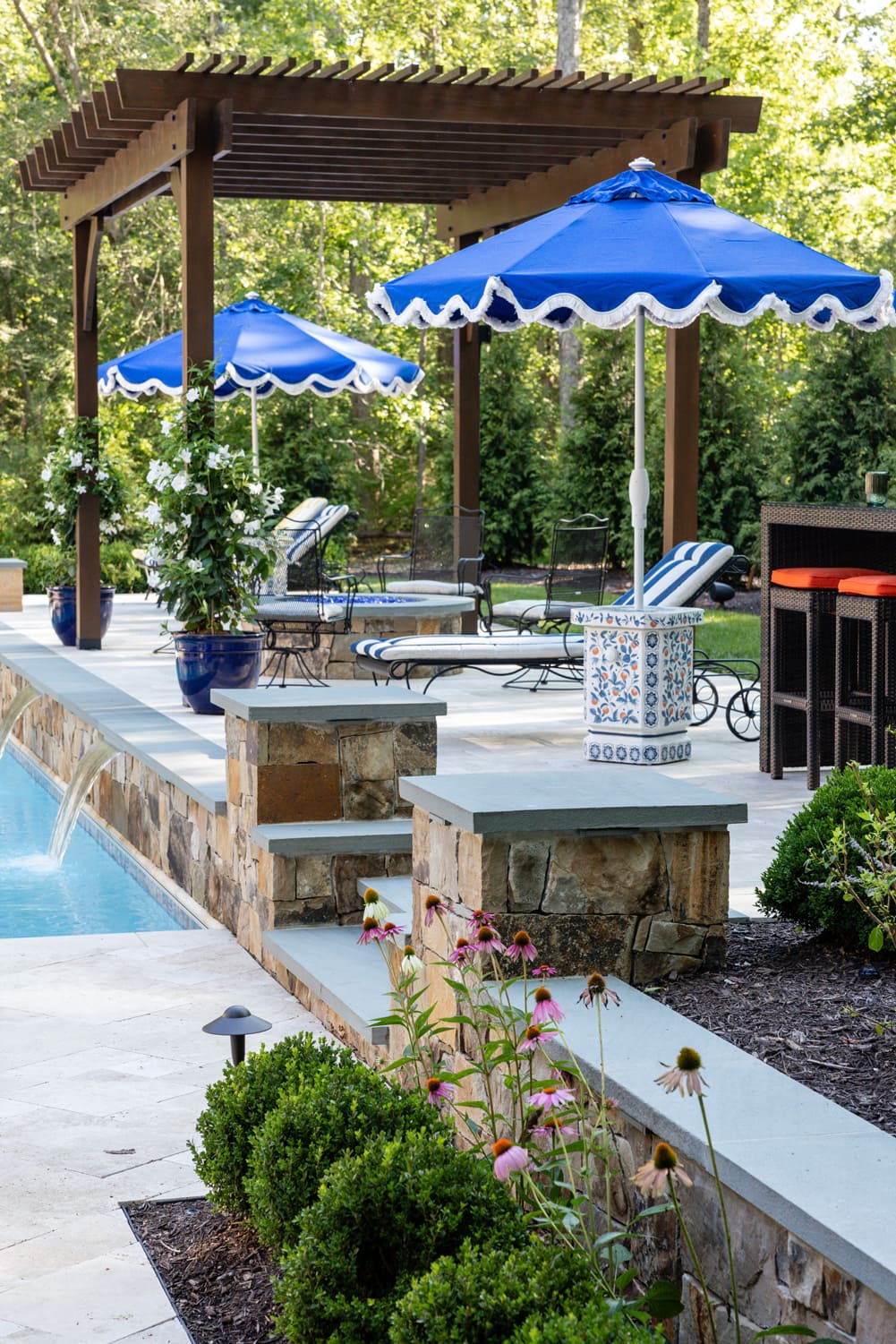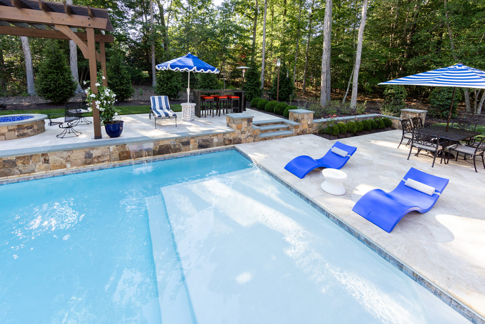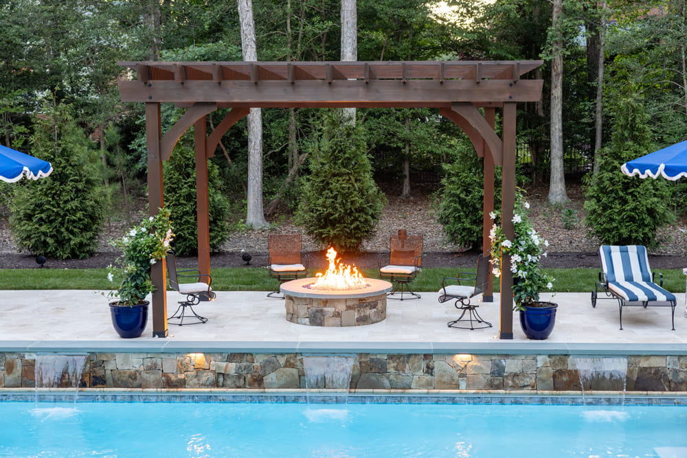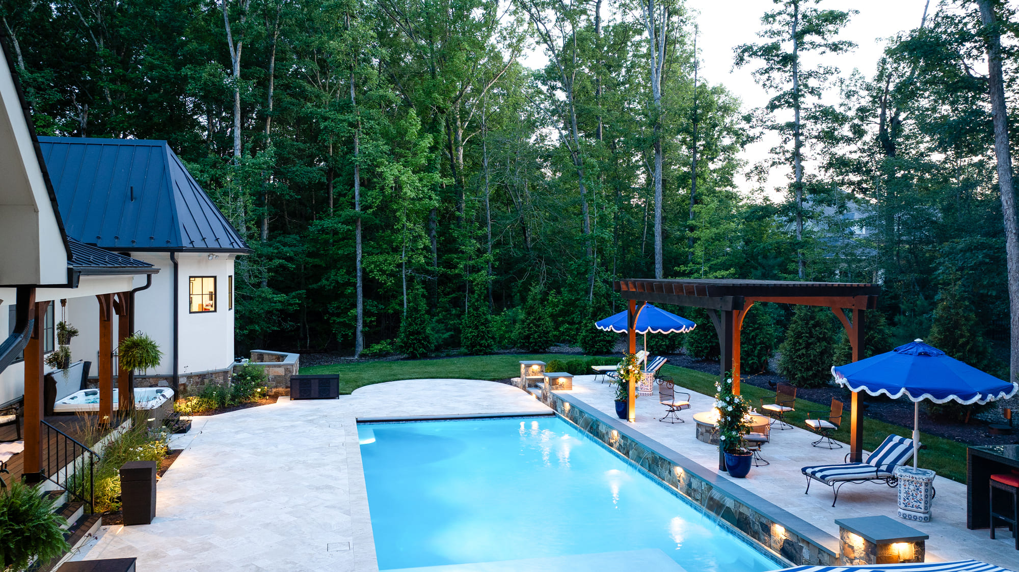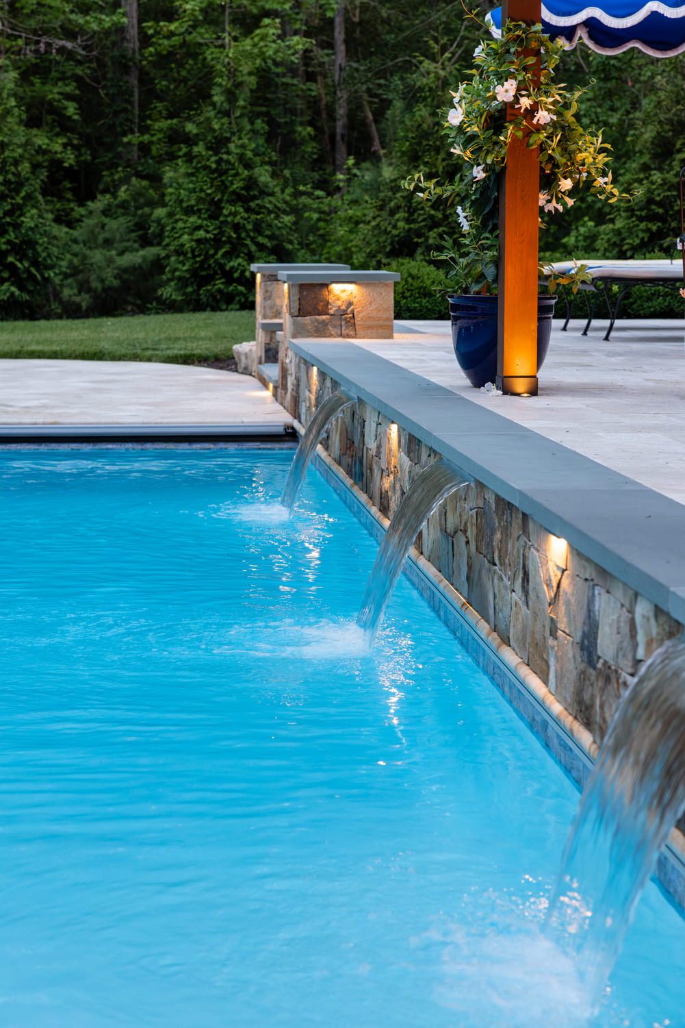 For this renovation project in Manakin Sabot, we transformed a simple backyard into a refreshed, modern retreat. The existing layout was reimagined around a new pool with elegant water features, creating a stunning visual anchor for the space. An Ivory Travertine pool deck brings a clean, timeless look with improved functionality and durability. A fire pit adds warmth and a natural gathering point, while new custom landscaping softens the space with texture, color, and balance. The lighting ties everything together, enhancing safety and creating a welcoming ambiance after sunset. The result is a revitalized outdoor environment that feels both elevated and effortlessly enjoyable.