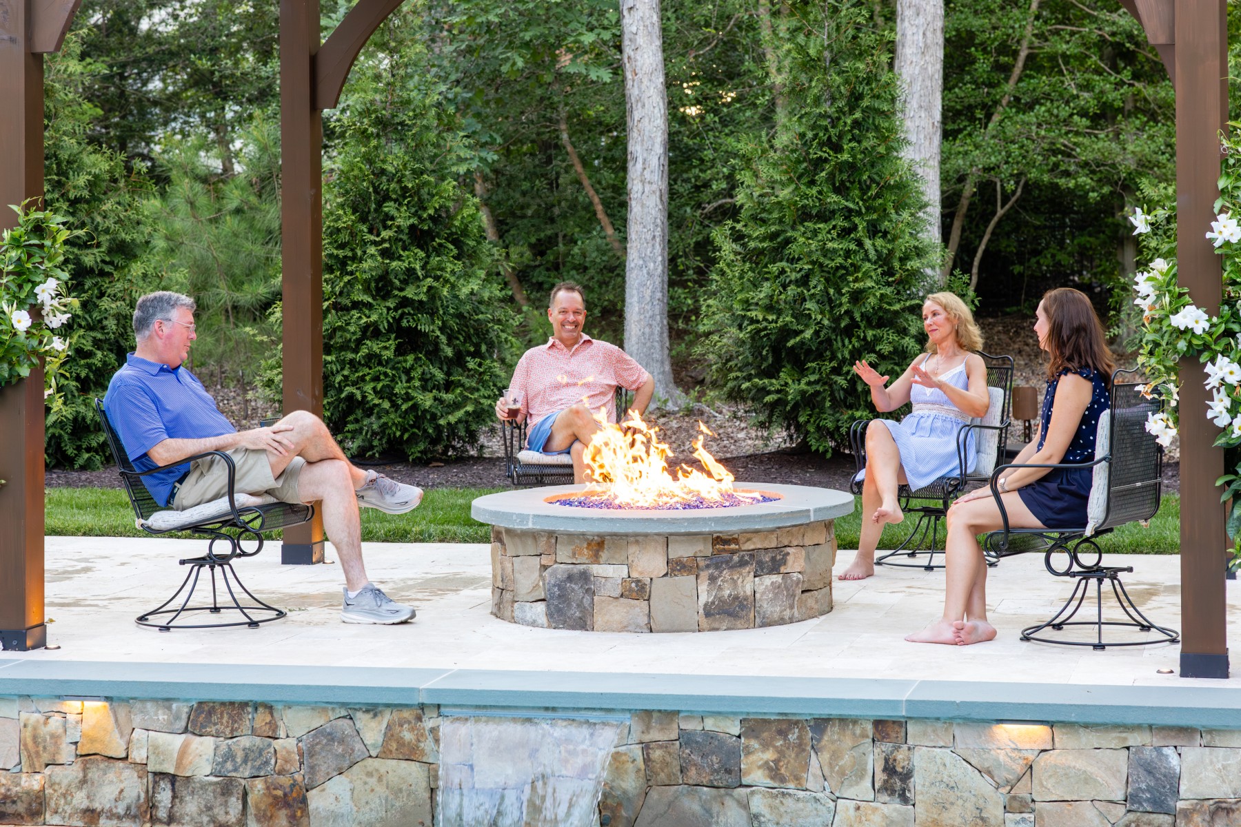 Functionality and Use: Think about how you plan to use your outdoor fire feature. If you envision cozy gatherings with friends around a fire and appreciate the convenience of a quick-start fire, a gas or propane fire pit is ideal. However, if you want a more permanent structure that adds architectural interest and offers additional features, an outdoor fireplace may be the way to go.